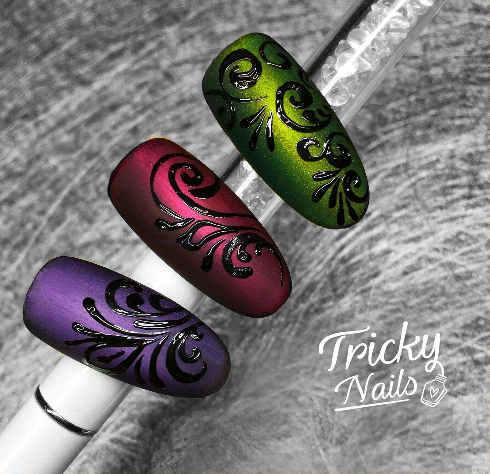 Malowanie na paznokciach jest trudne. Malowanie ornamentów jest trudne. Są to drobne, bardzo precyzyjne wzory i to na malutkiej, a do tego wypukłej powierzchni. Aby je pięknie malować trzeba kilku rzeczy, m.in. odpowiedniego nacisku pędzla, odpowiedniego prowadzenia tego pędzla, umiejętności operowania produktem itd.