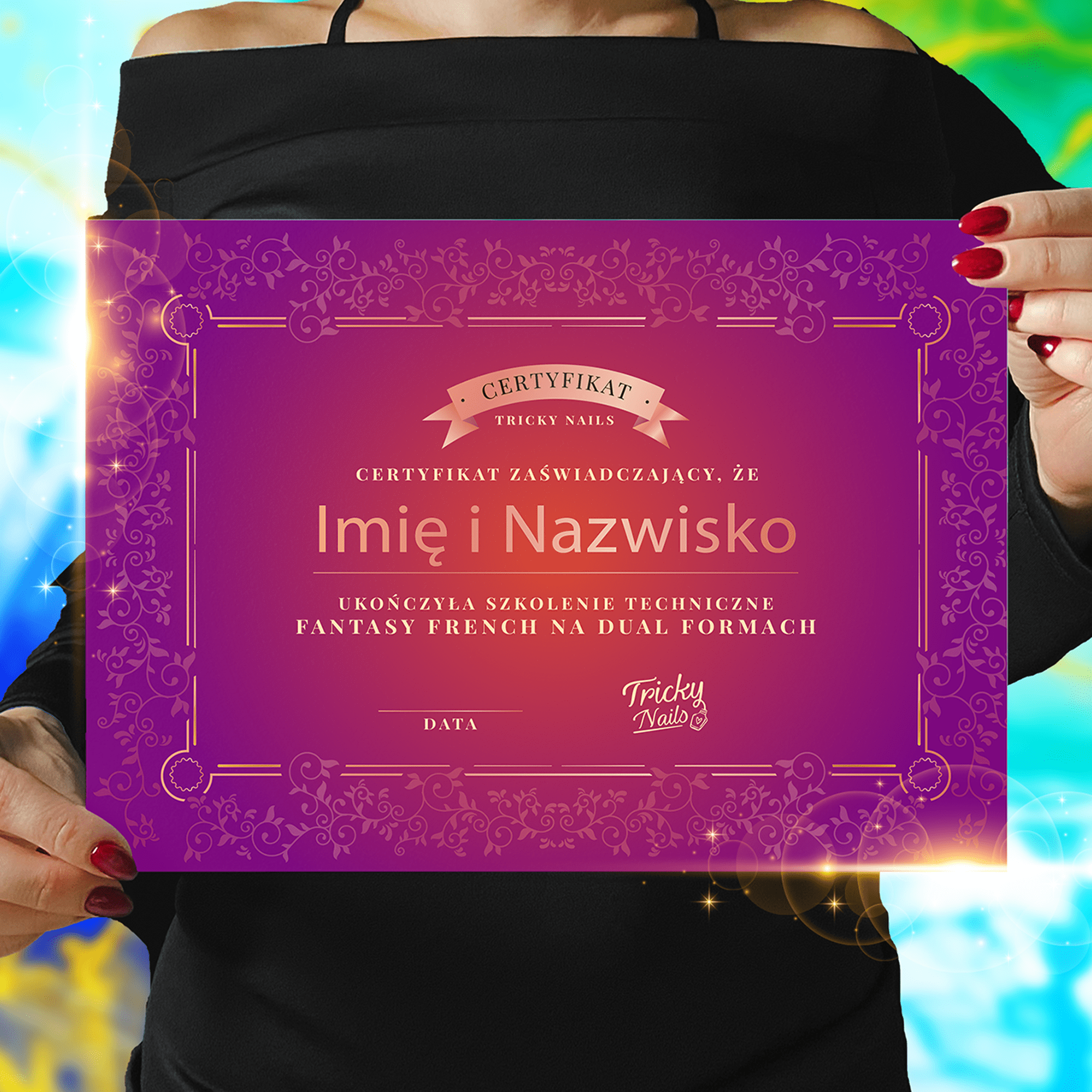 Na dual formach wykonasz każdy kształt paznokci i frencha jaki Ci się zamarzy! Uniwersalny krok po kroku, którego Cię nauczę będzie zawsze taki sam - zmieniaj kształty i kolory i wykonuj setki przeróżnych stylizacji z zawsze idealnie wyglądającym fantasy frenchem!