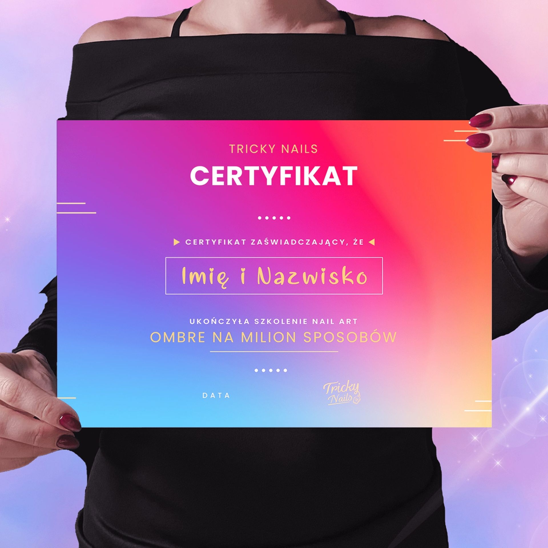 Pamiętaj też o pobraniu i wydrukowaniu Tricky Notatników czyli uporządkowanej wiedzy z danego szkolenia.Po każdym szkoleniu możesz zdobyć piękny imienny certyfikat. W każdym kursie jest dokładnie napisane jakie zdjęcia swojej pracy trzeba wstawić, aby otrzymać certyfikat.